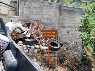 Съехав с основной дороги, пришлось изрядно покружить по оливковой роще прежде, чем обнаружился вход в ущелье. Как это часто бывает, наиболее интересные места находятся в безраздельном владении всяческих козлов. Вот и в данном случае нам пришлось миновать козью ограду. На пути попался нефункционирующий источник, без воды.